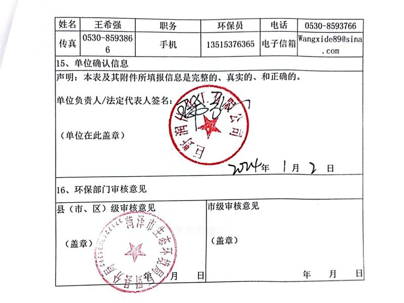 • 巨野潤佳化工有限公司2024年申報報表